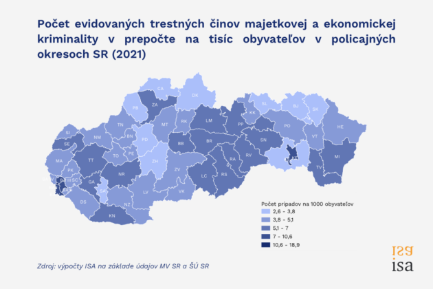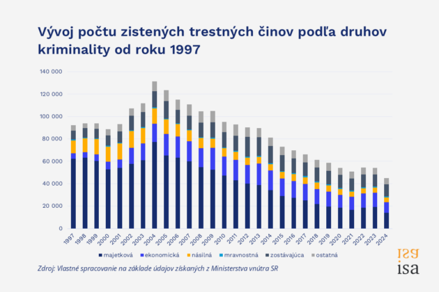 Rast životnej úrovne vedie k znižovaniu kriminality, najmä ak zároveň ekonomicky napredujú všetky okresy. Vyplýva to z analýzy Inštitútu pre stratégie a analýzy (ISA) a Inštitútu správnych a bezpečnostných analýz (ISBA). Oproti roku 2004 klesol počet zistených trestných činov o dve tretiny. Najväčší podiel z nich tvorí majetková kriminalita.